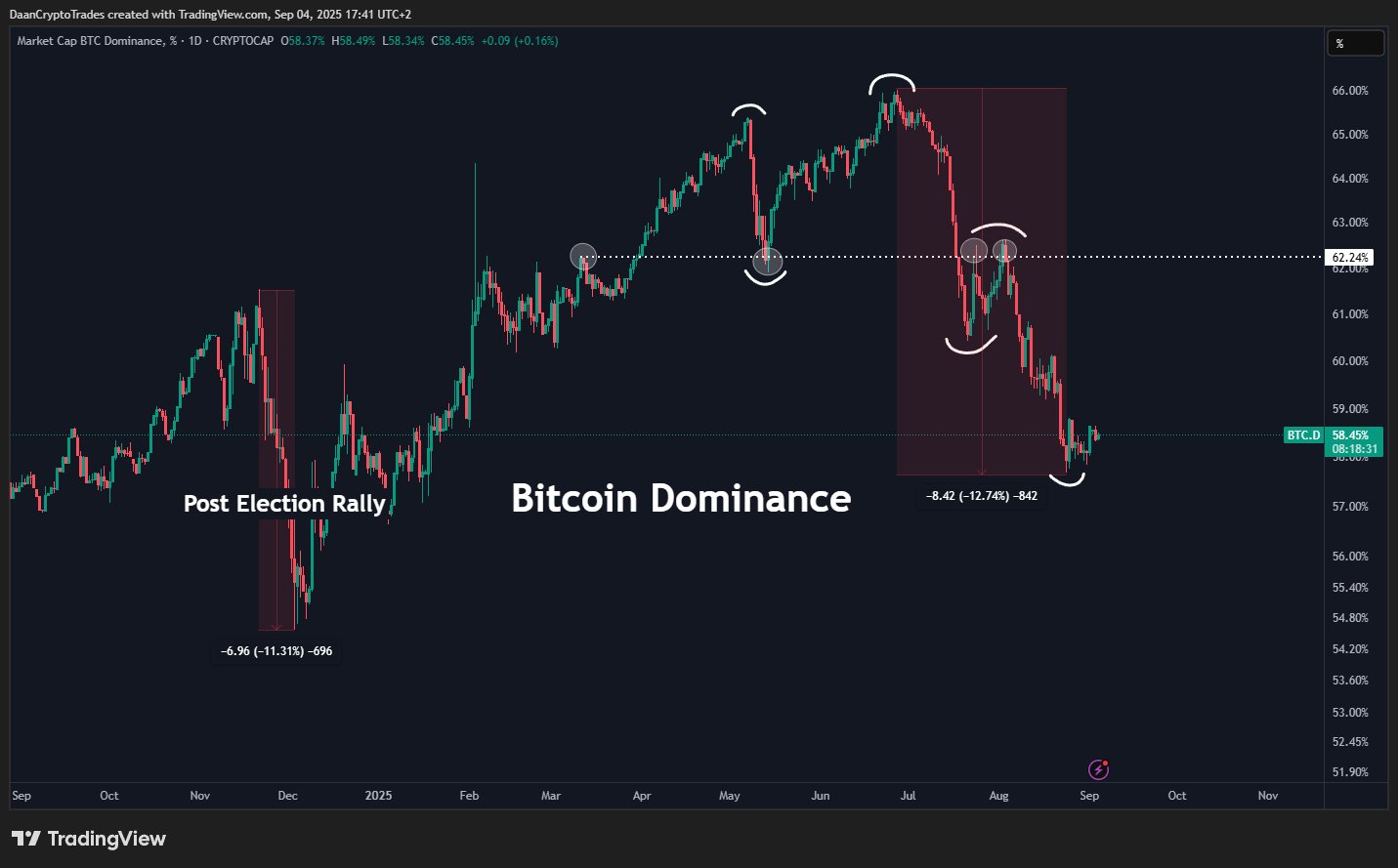 Bitcoin The second analyst focused on market domination was Daancrypto. Everyone in subcoins The ascension was waiting, but at the bottom prices, many more crypto currencies are confusing the environment. Therefore, the last decline in the BTC.D front and the current situation is a riddle that everyone is trying to solve.