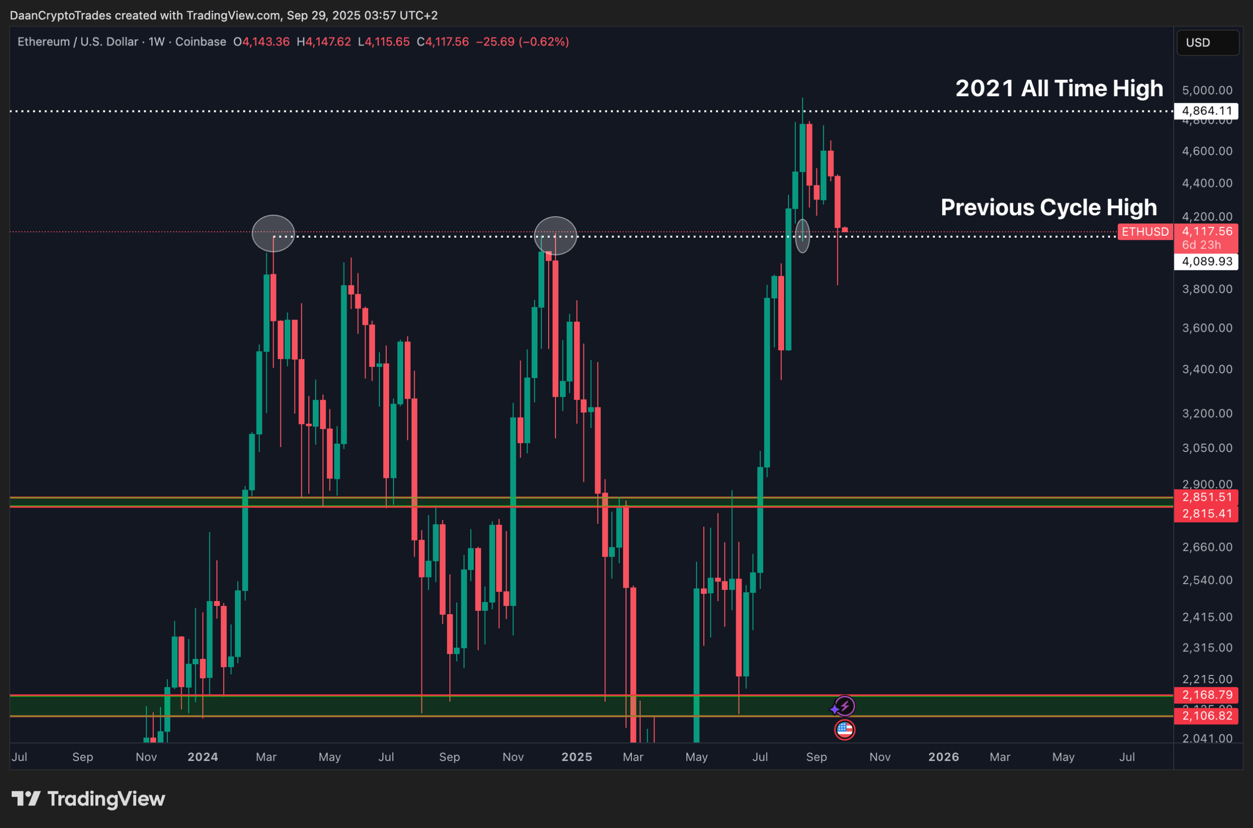 Daan Crypto Trades Analyst, known as the weekly closing, stressed that the previous cycle summit. According to him, the purchases coming from the last moment on Sunday were confirmed by the power of buyers. This reveals that Ethereum has regained not only the psychological threshold, but also in technical indicators.