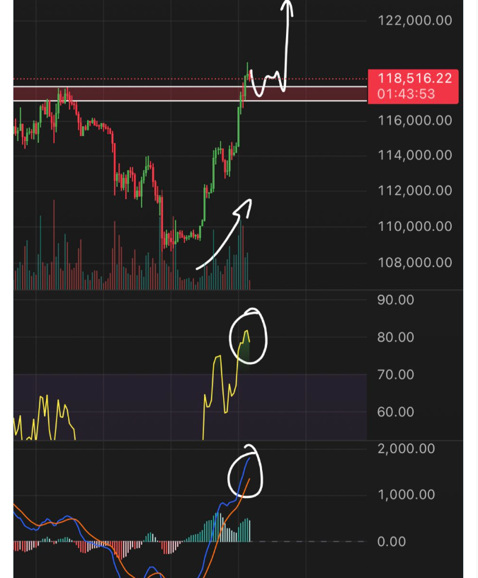 Volume, RSI and MACD seem good to continue 124k in the next few days. ”