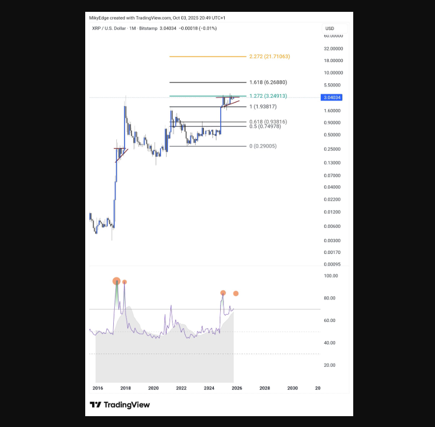 When entering the weekend of different analysts XRP And Aster coin Let’s take a brief look at your views. Volumes will weaken at the weekend but In BTC If profit sales begin and investors turn to subcoins (this is what we call Altcoin bull) we can see some movements. In the medium and long term XRP Coin Mikybul shared the graph below and wrote that the $ 21 is the most optimistic estimation, but the range of $ 6-10 can be seen before the cycle ends.