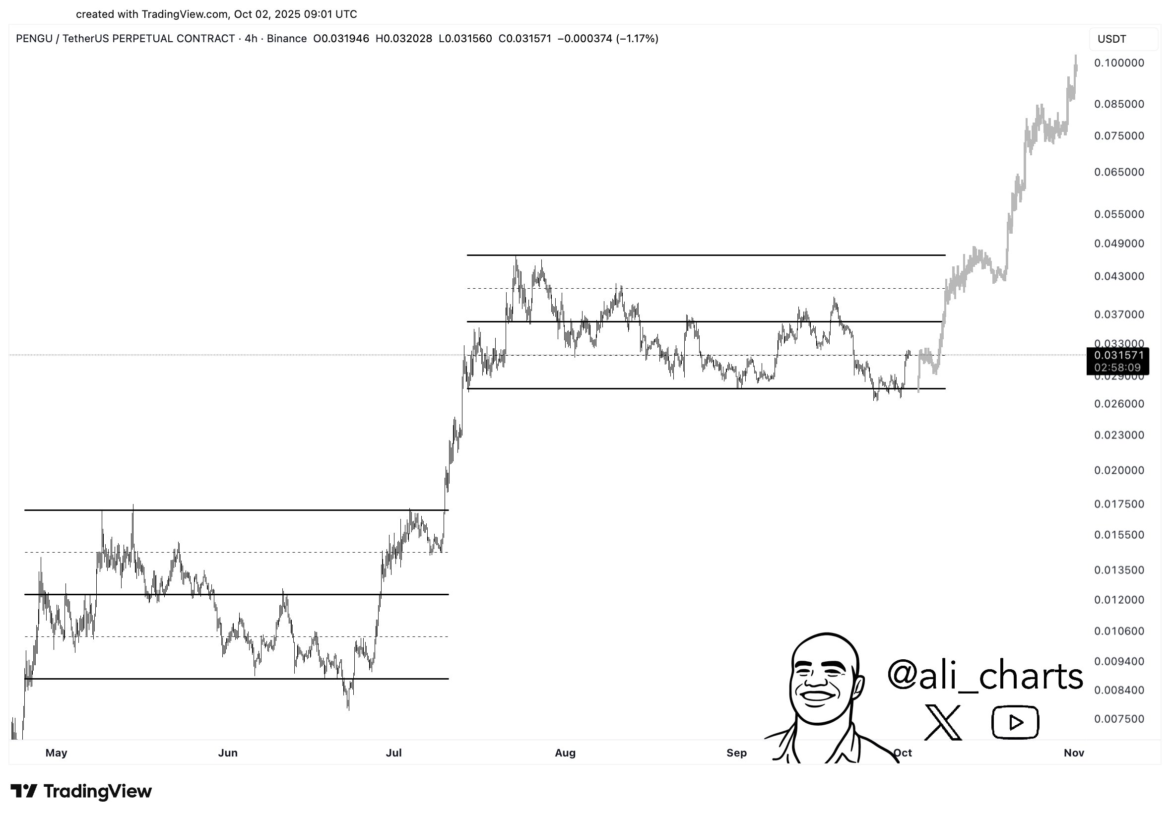 Penguin Ali Martinez, who has already published his last assessment for him, aims to $ 0.1 due to the repetitive fractal above.