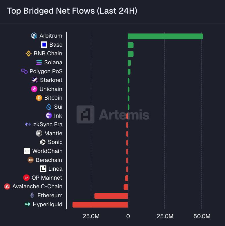 It is interesting that the Base network is still at the list while the arbitrum is the head. Soon the Coinbase Exchange is expected to make a token for the base network, and capital inflows say that popular subcoins on the network can bring good gains in the coming days. The outputs in the Hyperliquid network can be interpreted as the guarantee of gains. BNB inputs are also supportive for aster.