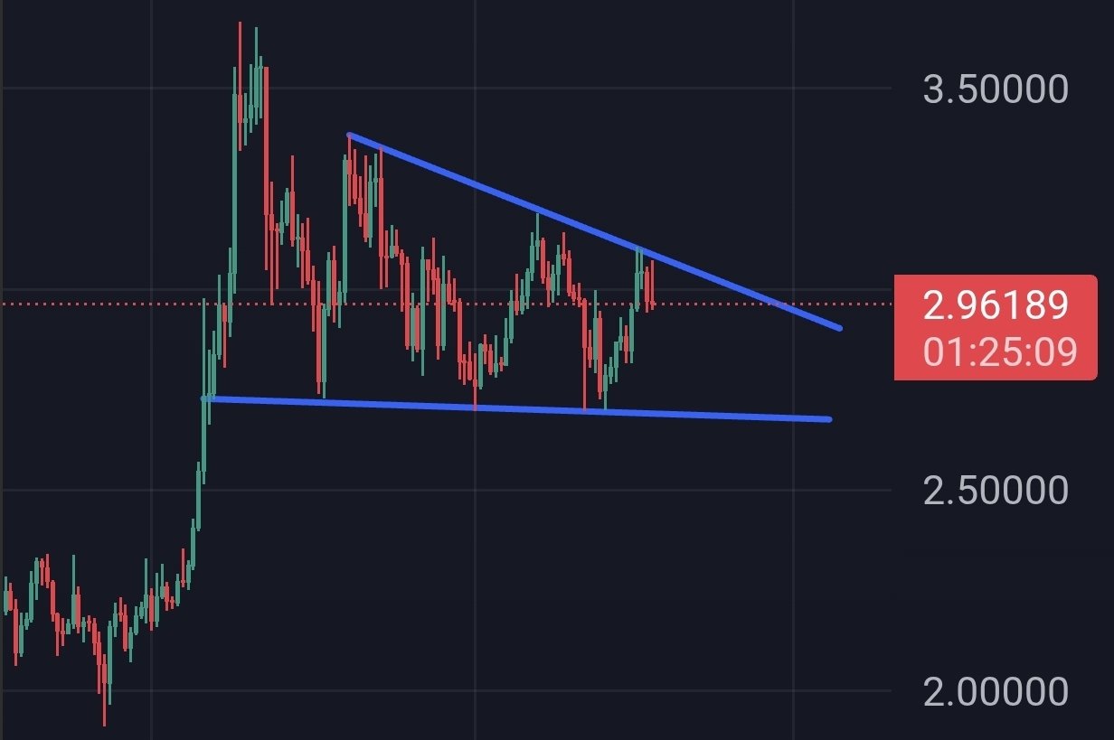 In the daily graph on the technical side Falling Wall FormationThe expectation of breaking up is alive. The first target of analysts is $ 3.33. Based on the target height, the new AD ath trial is on the table. 2.80 dollars is lock support. Protection of this level will be decisive for a permanent recovery of the $ 3 threshold and a rise to $ 3.33.