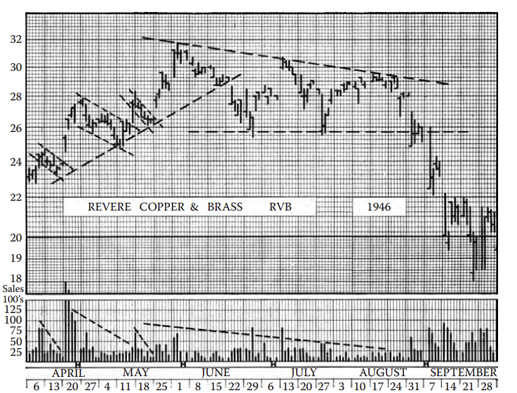 “On the left (above), Edwards and Magee has a classic descending triangle and shows what descending triangles should do. On the right (below) there is a developing descending triangle. If only closes below 2.68 (then I will be one of those who hate it), it must fall to 2,221.”