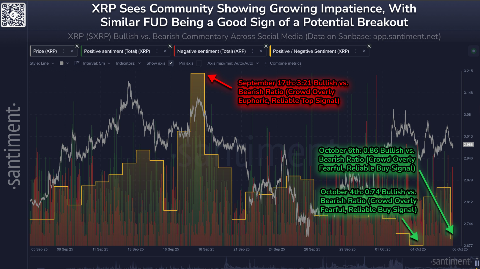 The Santimement Rise-Fair Feeling that compiles on-achain data XRP Coin shows that it has fallen below 1 in 2 days. This means that fear has become dominant again and even returned to the April period.