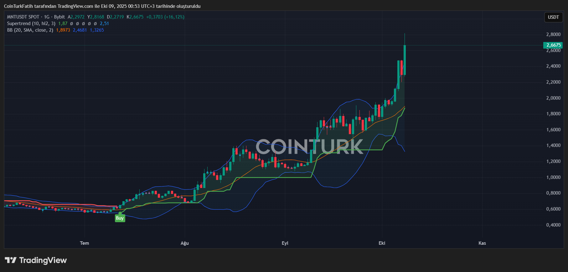 MNT Coin It is among the altcoins that make the most profit. The altcoin, which had difficulty exceeding $1.5 when listings started in July 2 years ago, has continuously formed a green candle for the last 4 months and has experienced a vertical rise. The level it must exceed is $2.82, above which it will continue the price discovery process. The threshold it must maintain for an increase is $1.5, which it had difficulty exceeding during the launch period, and we have clearly seen the importance of this threshold over the past month.