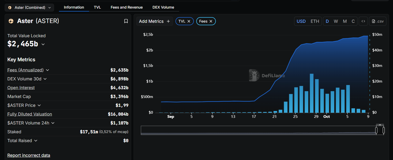 I’m not talking about Aster being a bubble in the first sense of crypto. The vertical rise triggered by strong demand combined with greater than expected launch excitement needs to enter a consolidation process. As a matter of fact, the closings that cannot continue above $ 2.12 confirm this. The protocol’s fee has been decreasing for the last 3 days, and even the October 8 revenue dropped to the September 22 level. There are huge candles in between and the record belongs to September 28 with 25 million dollars.