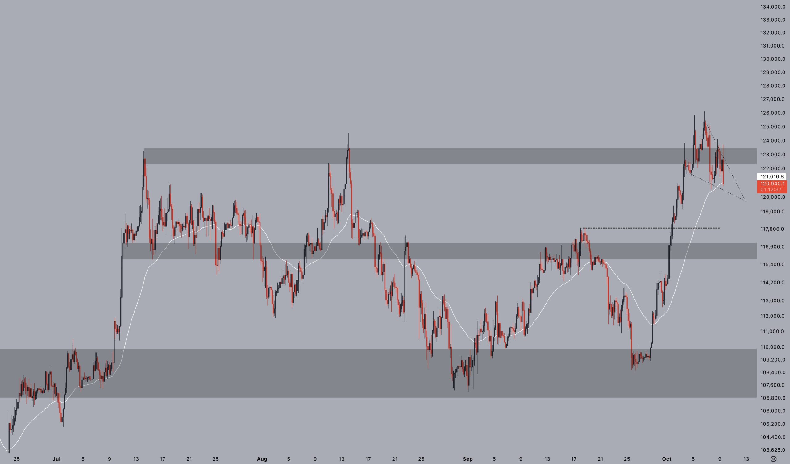 US data is not coming due to the shutdown and the shutdown may continue until the end of the month. So the Fed may need to make a decision in light of current data. This means that the possibility of an interest rate cut at the end of the month increases. The biggest threat to cryptocurrencies of BTC There is a risk that it will lose momentum after ATH and fall to 117 thousand dollars and below, triggering a new sales wave.