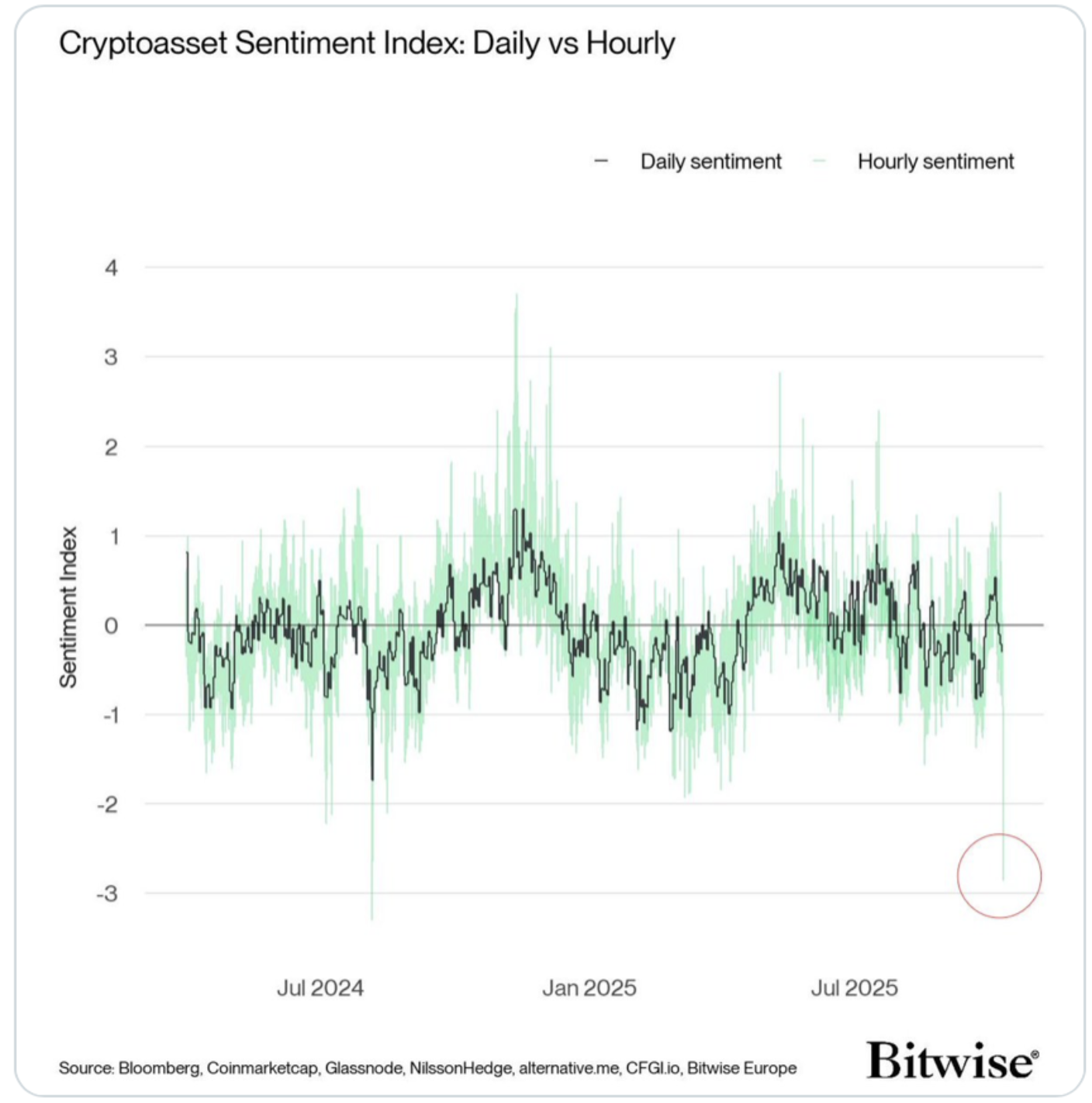 However, despite all this, Bitwise Europe Research Director Andre Dragosch said in his post on the X account that the company’s “intraday sentiment index produced a strong reverse buy signal.” Dragosch stated that the index fell to its lowest level since the “Yen Carry Trade Unwind” period in the summer of 2024, with a standard deviation of -2.8.
