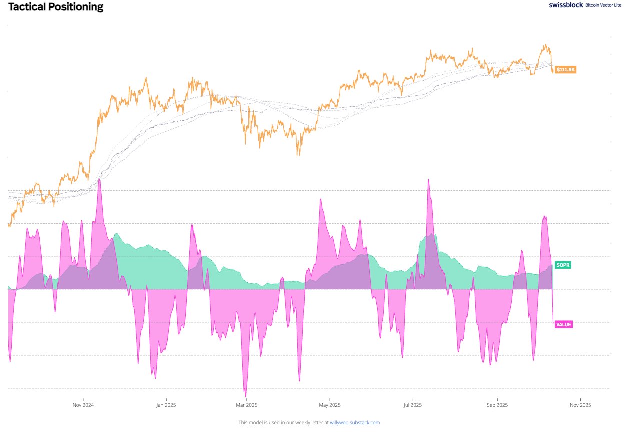 intra-blockchain analyst Willy WooBitcoin after the selling wave on Friday night $111,489.43He gave the message that it remained stronger than expected. X In the message he shared on his account, he emphasized that the structure formed by increasing inflows maintained the price, investors did not turn to profit taking and the SOPR indicator has not turned down yet. While he talked about a 24-48 hour period for bottom confirmation in the short-term outlook, he gave the message that he maintained his caution and optimism with the metaphor of “the crack that occurs before the structure is destroyed” in the broader picture. He also reminded that it usually takes weeks for stock markets to recover after sharp declines.