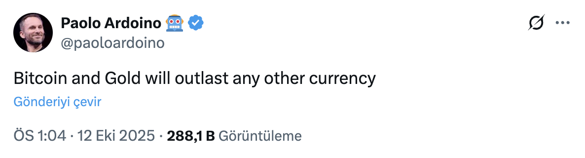 Ardoino said in his post over the weekend:Bitcoin He made a simple but assertive statement with the statement “and gold will outlive every currency.” The target audience of the message is institutional and individual investors who closely monitor the reserve composition. The timing of the message came in a week when the search for a safe haven became stronger after the harsh volatility.
