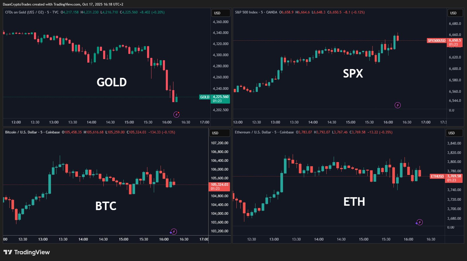 Definitely linked to too much capital and unrealized PnL gold. I see signs on some lower time frames that risky assets are gaining value as gold sells off. However, what is important is the trend in the higher time frame. Many still have a long way to go to somehow catch up to gold’s massive (risk-adjusted) rally this year.”