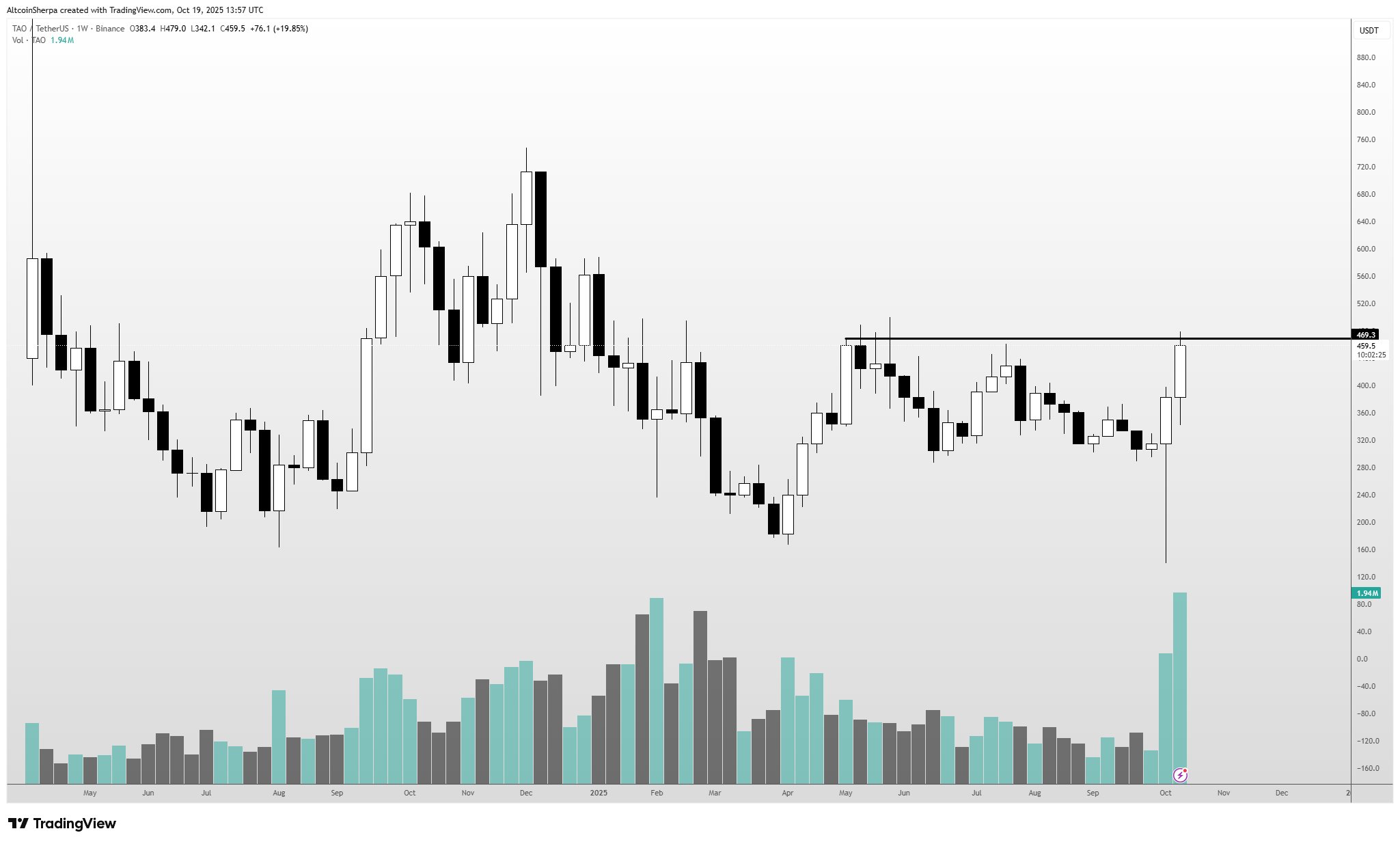 “TAO It showed a very strong recovery and I have been in a long position since yesterday. I bought and sold the position several times but I will take my profit in the 460-480 range. “If it breaks this level solidly, I would be happy to buy again, but I will try to be aggressive with TP in these conditions.”