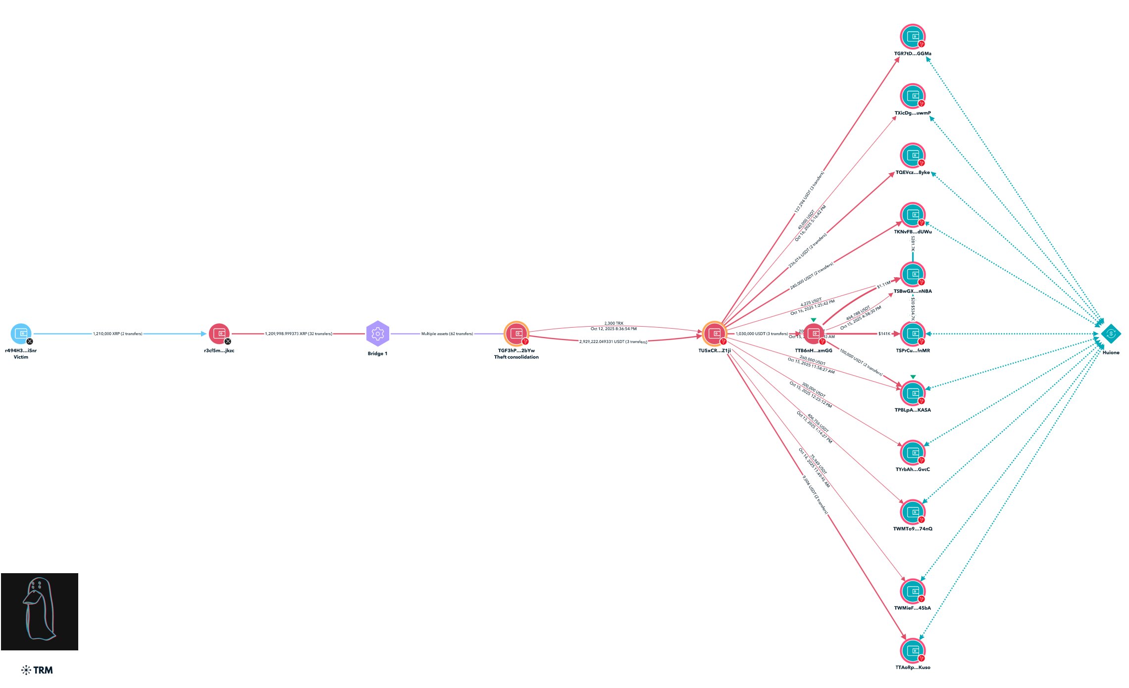 on October 19 X Making a detailed post on his platform, ZachXBT mapped the address of the attack that started on October 12 and more than 120 Ripple-Tron exchanges. funds before Tron He stated that it was consolidated on the Huione network and then distributed to Huione-affiliated exchanges by October 15.