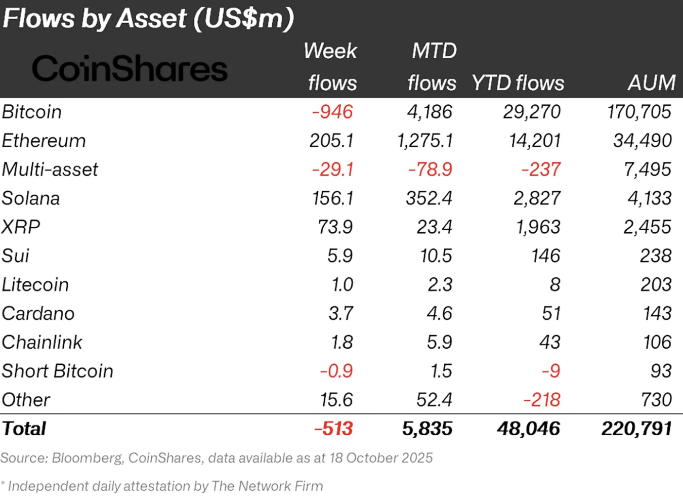 cryptocurrency There was an outflow of $513 million from investment-based investment products following the liquidity shock on October 10. But investors, especially Ethereum $4,042.11made strong purchases against the selling pressure by taking advantage of the opportunities in Solana and XRP. Despite the US-based outflows, investors in Europe and Canada turned the decline in prices into an opportunity.