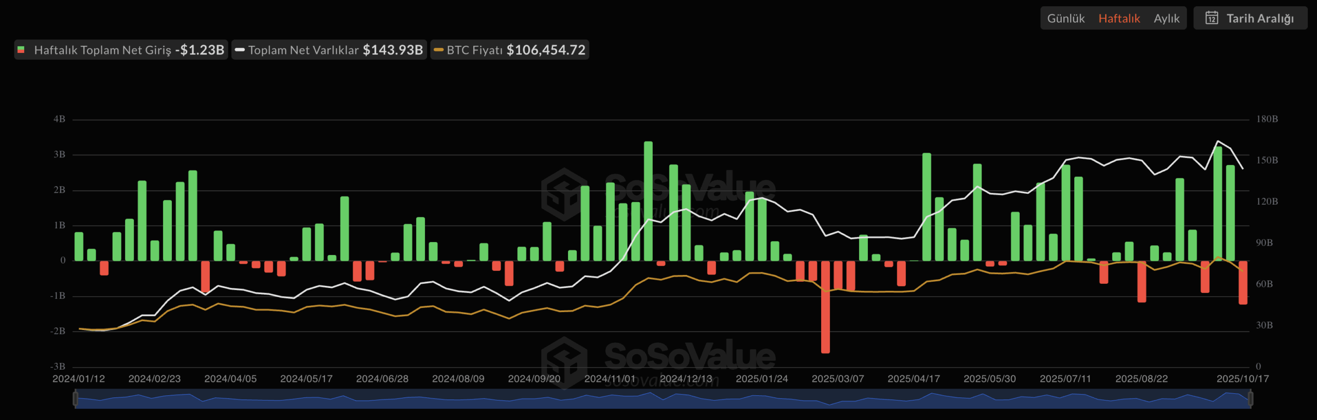 traded in the USA spot Bitcoin $110,896.21 ETFThere was a net outflow of 1.23 billion dollars from ‘s last week. The weekly net outflow of $1.23 billion represents the second-largest weekly loss in the ETFs’ history. SoSoValue According to data, there was an outflow of $366.6 million from ETFs on Friday alone. This sharp reversal, following the strong inflow of $2.7 billion in the previous week, cryptocurrency marketIt reveals that they reduced their positions in the face of the sharp volatility in the market.