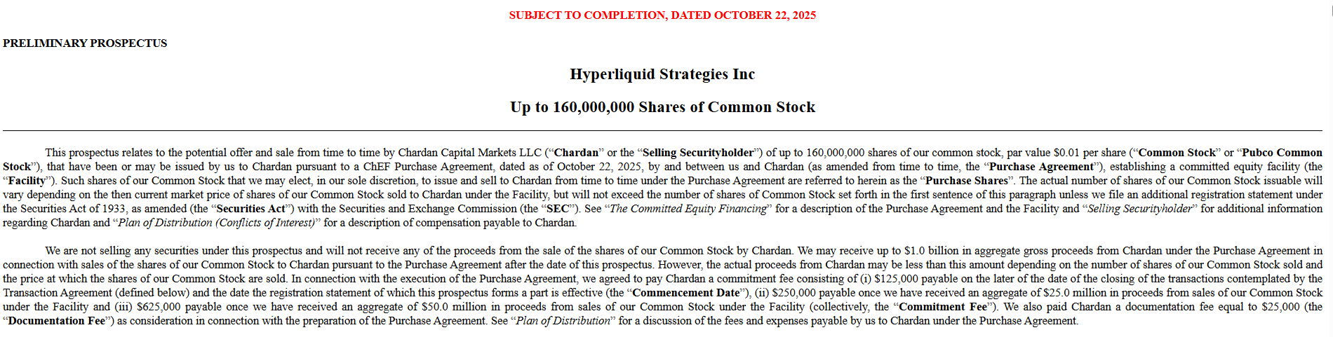 Hyperliquid Strategies, which has applied to the SEC for a $ 1 billion public offering, plans to offer 160 million shares. Chardan Capital Markets will provide financial advice for the IPO.
