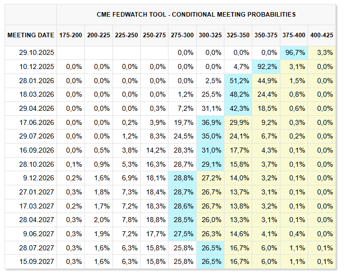 The new month begins next week and there will be statements from Trump ahead of the tariff hearing on November 5. The Supreme Court will make a decision, and if the markets get into the “cancellation of tariffs” mood before this decision, Trump may talk about looking for alternative ways. He may point the finger at the court as he threatens to impeach Powell, and we may see other crazy things.