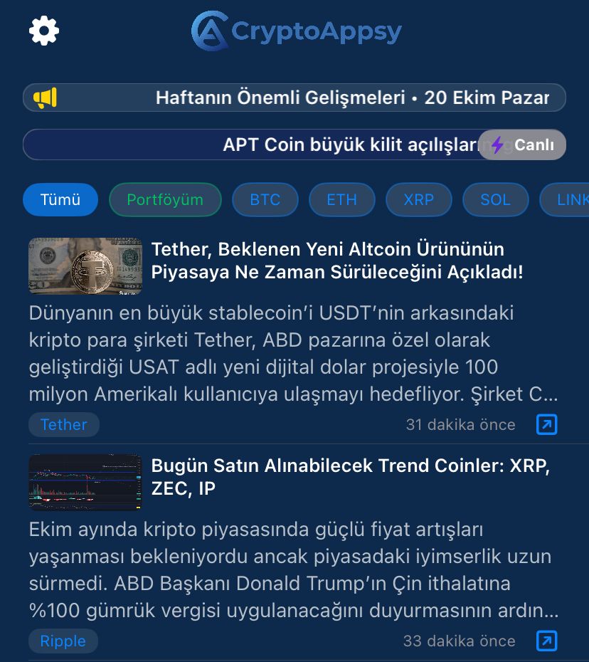 There will be dizzying news traffic throughout the week. For this reason CryptoAppsy News feed can make your job easier. Here it is possible to watch the live news feed while tracking your portfolio. However, it makes your job easier since summaries of the developments are provided and you can access the details whenever you want.