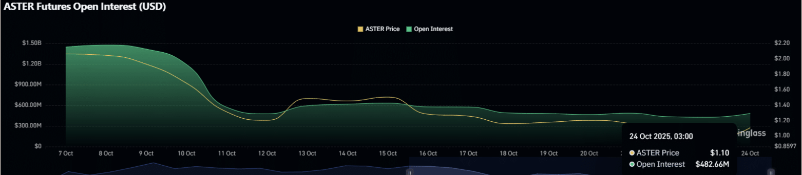 Data in derivative markets also support this optimism. Aster’s funding rate is at 0.0123, meaning long investors have a strong belief in the price increase. In addition, open interest in futures transactions increased by 62 million dollars in the last 24 hours, reaching 483 million dollars. This shows that new capital has begun to enter the market and that the rise is not just a speculative movement.