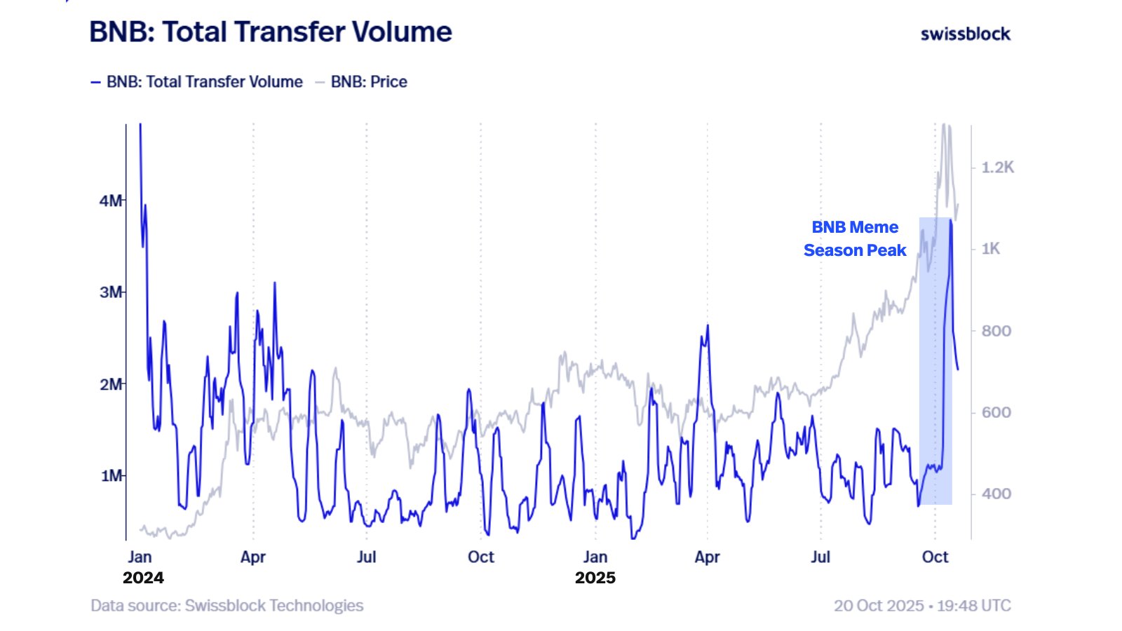 CryptoQuant According to data, BNB’s price last traded around $1,138, aligning right with its 45-day moving average. The fact that the 90-day average remains at $941 shows that the medium-term trend is still upward. Despite the limited increase of 2.7 percent in the daily time frame, the fact that the price remains above important support levels indicates that the market has found balance.