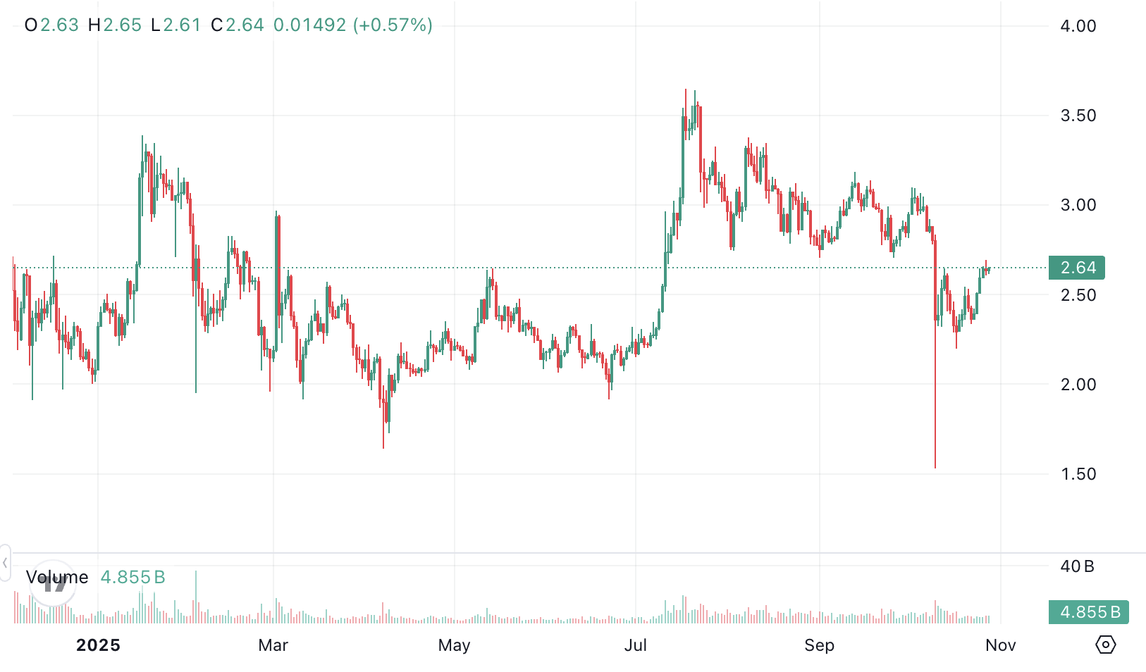 Analysts state that maintaining the support in the $2.61–$2.63 range could trigger an upward break. A bounce backed by volume could bring new momentum, pushing the price above $2.70. In the opposite scenario, $2.60 or even $2.55 levels may be retested.