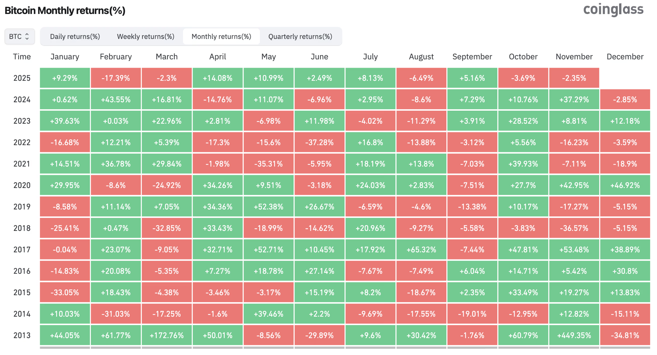 CoinGlass according to data Bitcoin It shows that November was mostly positive for . The largest cryptocurrency, which has risen in November in 9 of the last 12 years, will test whether it can continue the historical trend this year. However, the realization of this depends on investors regaining confidence and the Fed’s monetary policy becoming clear.