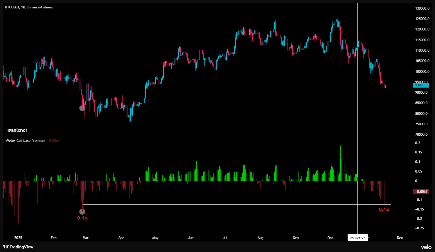 “Yesterday, Coinbase Premium Index had the most negative closing in almost the last 9 months. This must turn positive, otherwise there is no light.”