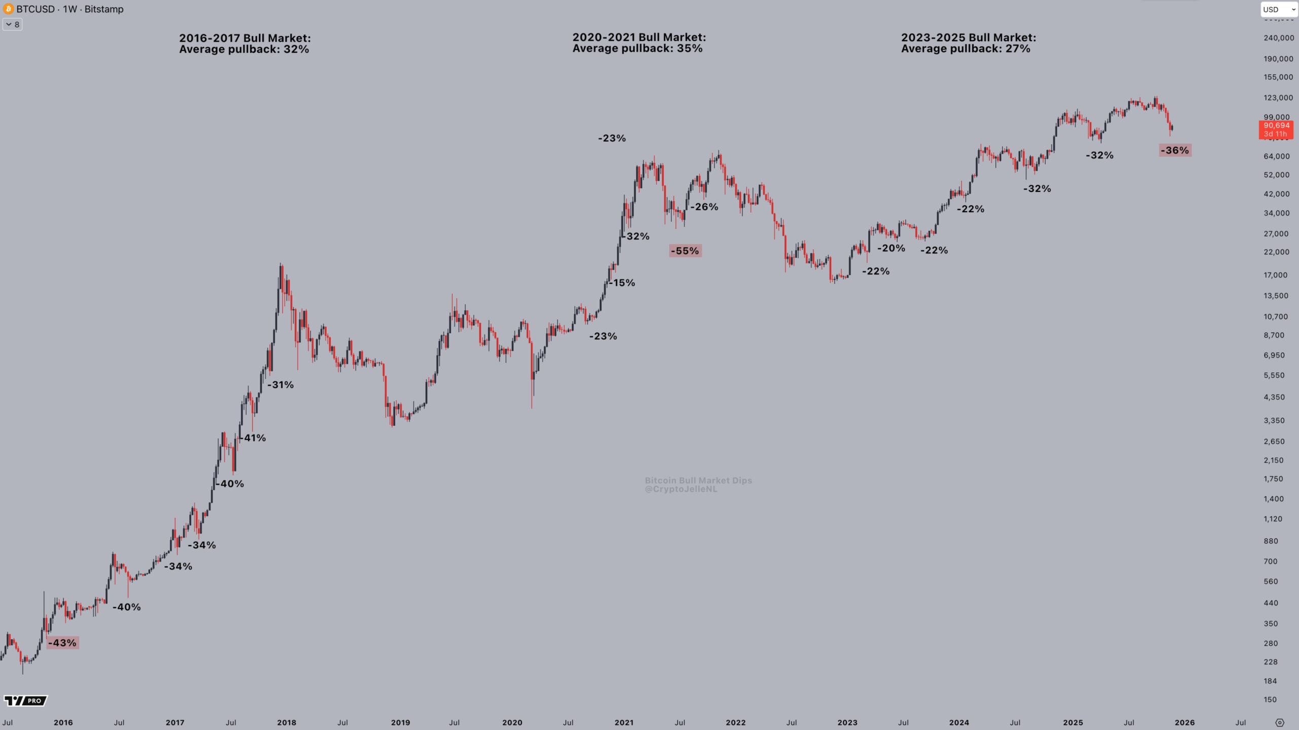 Compared to previous cycles, there still seems to be bullish hope for BTC. In his analysis shared a few hours ago, Jelle wrote that if the ongoing pause triggers a support test, things may become difficult in the short term.