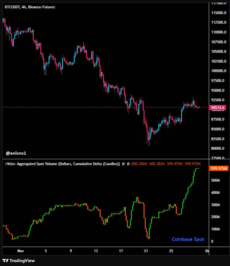 “The reason for turning positive Strategy There may be purchases, there may be other companies, but on the Coinbase side, the trend is now buying for some. We can see this on the spot side as well. The premium has been negative since the last drop at 80K level, but its momentum was recovering upwards, I shared from time to time. It only closed positive for 1 day, so we need to be patient. As I said, if it continues, we will see the benefits, but the timing is not clear. “When there is data turning from negative to positive, it would be wrong to expect a direct response in the price.”