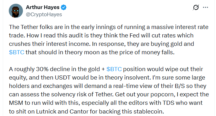 Hayes said today that Tether reserves are not safe and in cryptocurrencies He wrote that it could cause collapse. CryptoQuant CEO Ki Young Ju replied to him;