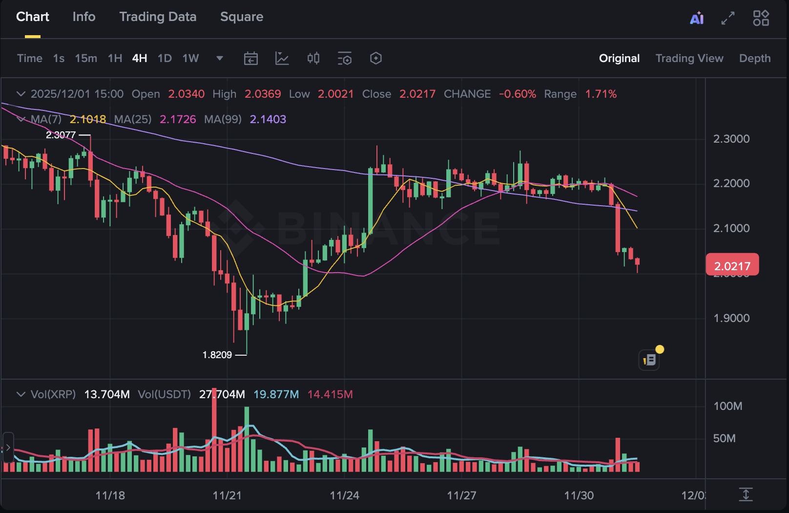 XRP is clearly feeling the impact of the recent sales wave seen in the general crypto market. Market sentiment has still not fully recovered after the sharp fluctuations experienced in November. This situation also puts pressure on XRP. In the last 24 hours, the XRP price decreased by over 7 percent to $ 2.03. On a weekly basis, the loss is around 1.3 percent.