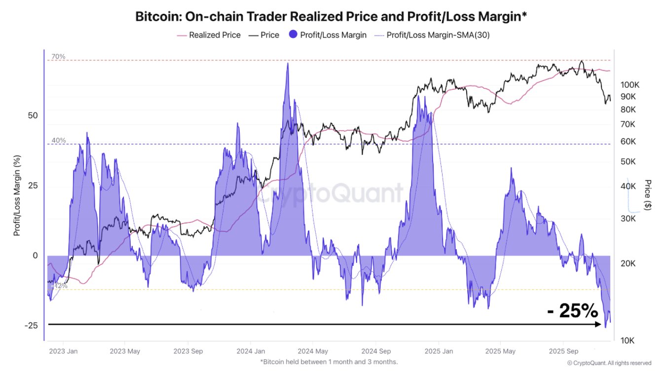 “With the realized price of $113,692, BTC On-chain trading groups are experiencing the largest percentage loss this cycle. We are only talking about the spot market here. The idea is to isolate a very specific group of investors who speculate in the short term. On-chain traders are investors who hold BTC for 1 to 3 months. Investors in this category have been experiencing losses of 20% to 25% for two weeks, clearly reflecting capitulation behavior. In this cycle, these phases are often associated with bottom formation, as these traders often have to choose between two behaviors: sell or hold. As we have seen in recent weeks, when a large portion of these surrender, the accumulation opportunity often becomes interesting. However, this is only true if the long-term uptrend is not broken. For now, this still appears to be the case despite the current period of uncertainty, but it is important to remain cautious and vigilant at this stage.”