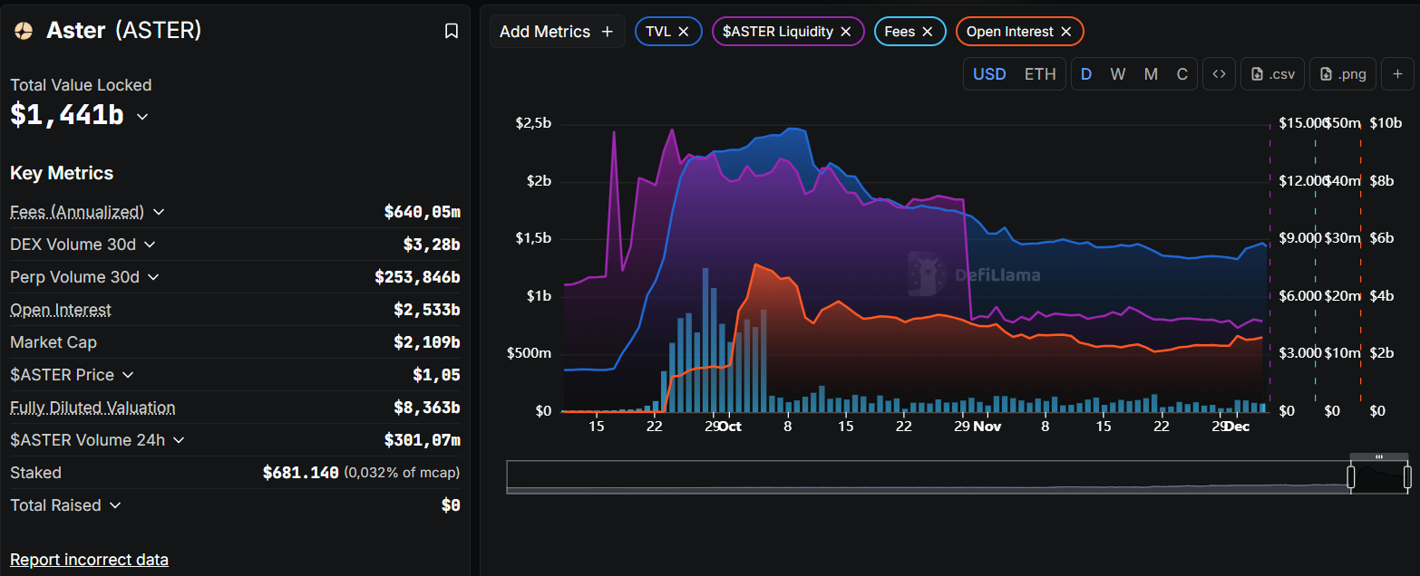 What is the situation on the on-chain side? Total Value Locked (TVL) has fallen from a peak of over $2 billion to $1.35 billion and is recovering well for now. Liquidity and Fee revenues have weakened, but the decline does not continue.